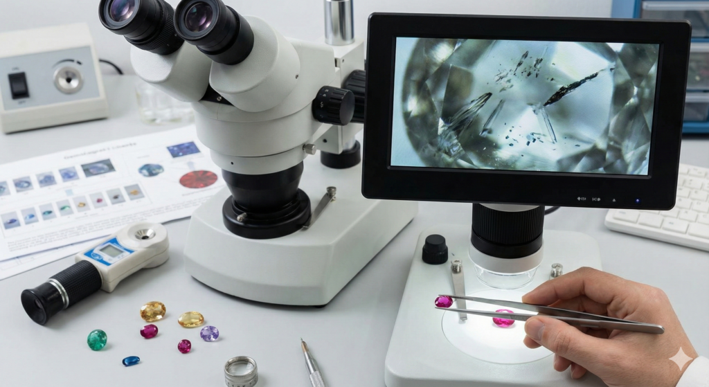 We use modern gemological instruments and standardized testing procedures to analyze color, clarity, structure, and composition. This ensures precise, unbiased, and repeatable results for every gemstone examined.